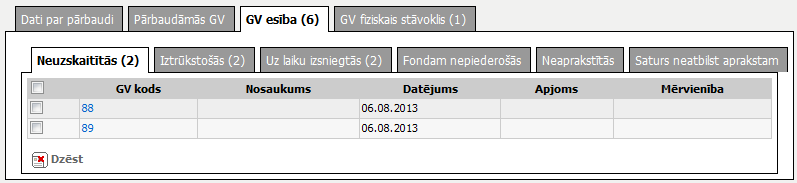 Šķirklis „Neuzskaitītās” paredzēts glabājamo vienību, kuras esības un fiziskā stāvokļa pārbaudē konstatētas kā neuzskaitītas, attēlošanai.