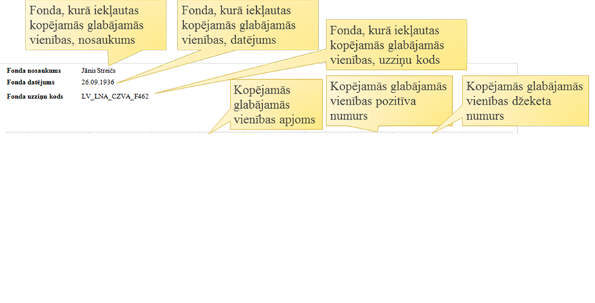 Atskaite ‘Kopējamo glabājamo vienību apraksta tabulas izdruka’ ir paredzēta glabājamo vienību un to izveidoto kopiju informācijas attēlošanai.