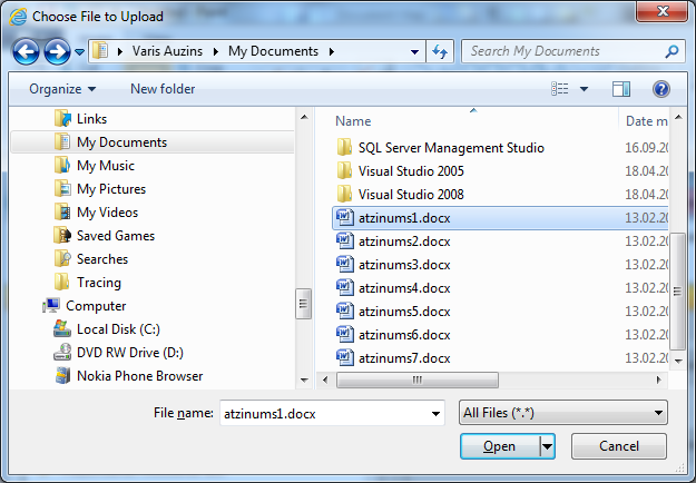 Sistēmā lietotājiem ir iespēja augšupielādēt dažādu veidu dokumentu datnes.