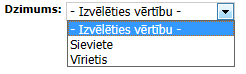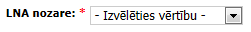 Izkrītošais saraksts klasifikatora vērtības izvēlei. Lai norādītu vērtību, noklikšķinot uz lejupvērstās bultiņas, ir jāatver saraksts un jānoklikšķina uz vajadzīgās vērtības vai arī jānorāda vērtība ar tastatūras bultiņu taustiņiem, virzoties sarakstā uz augšu vai uz leju. |