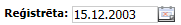 Datuma ievades lauks. Datums ir jāievada dd.mm.gggg formātā. Datumu var ievadīt ar tastatūru vai norādot to kalendārā (skat aprakstu 2.10.1. Kalendārs un datuma ievade). |