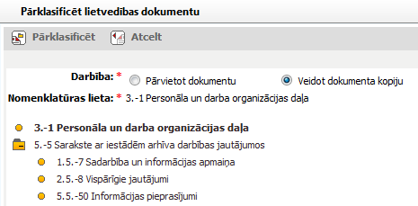 Nav norādīta nomenklatūras lieta. Lai pārvietotu dokumentu, norādiet nomenklatūras lietu. |