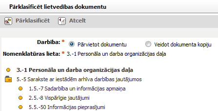 Nav norādīta nomenklatūras lieta. Lai pārvietotu dokumentu, norādiet nomenklatūras lietu. |