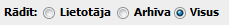 Radiopoga. Atzīmējot tiek attēloti visi lietotāja arhīva objekti. Pēc radiopogas izvēles tiek atjaunots saraksts ar izvēlētā kritērija datiem. |