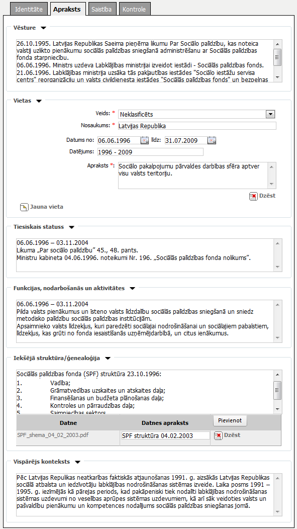 Organizācijas iekšējā struktūra vai dzimtas ģenealoģija, kā arī pievienoto datņu saraksts. Papildus blokā iespējams pievienot vairākus struktūras vai ģenealoģijas datņu ierakstus, kuri tiek kārtoti dilstošā secībā, t.i., jaunākie ieraksti atrodas saraksta augšpusē. |