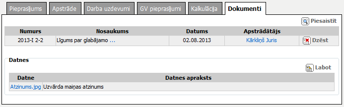 Attēlo pieprasījuma šķirklī ‘Dokumenti’ piesaistītās datnes. |