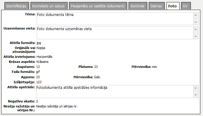Šķirklis „Foto” paredzēts sistematizācijas elementa ar tipu ‘Fotodokuments’ apraksta vienībai.