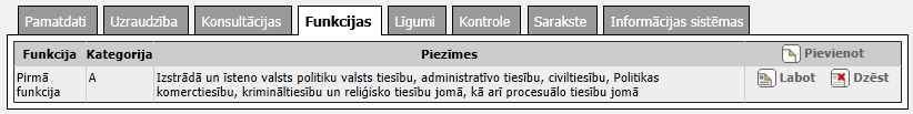 Noklikšķinot tiek atvērta funkcijas ievadforma labošanas režīmā. |