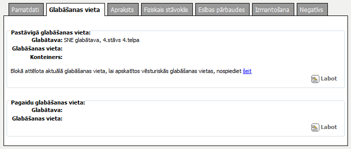 Blokā attēlota aktuālā glabāšanas vieta, lai apskatītos vēsturiskās glabāšanas vietas, nospiediet šeit |