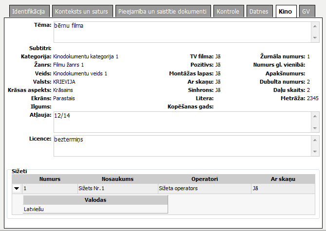 Kinodokumenta vai videodokumenta veids. Vērtību izvēle no klasifikatora ‘Kinodokumentu veidi’. |