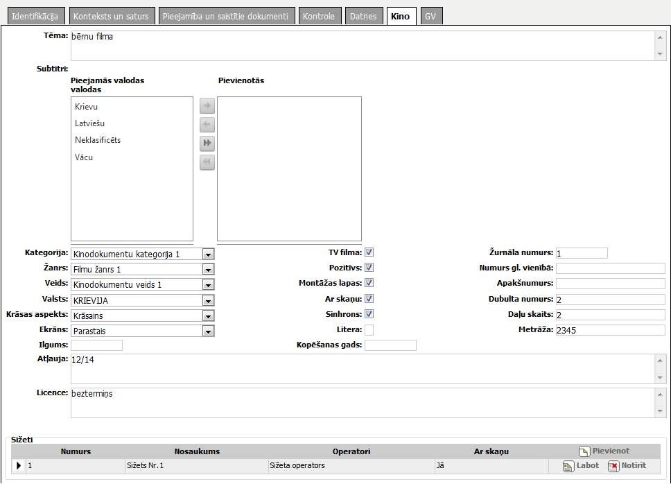 Kinodokumenta vai videodokumenta liters. |