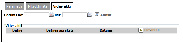 Šķirklis „Vides akti” paredzēts glabātavas vides aktu datu pievienošanai, apskatei un labošanai.