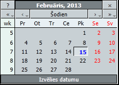 3. Lai norādītu datumu, noklikšķiniet uz vajadzīgā datuma. Datuma lauks tiek aizpildīts ar izvēlēto datumu, un Kalendārs tiek aizvērts.