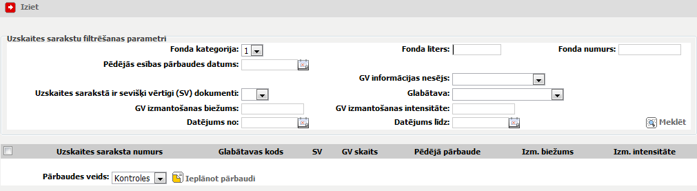 Šis bloks paredzēts dažādu meklēšanas parametru norādīšanai, pēc kuriem tiek meklēti esības pārbaužu plānā iekļaujamie uzskaites saraksti. |