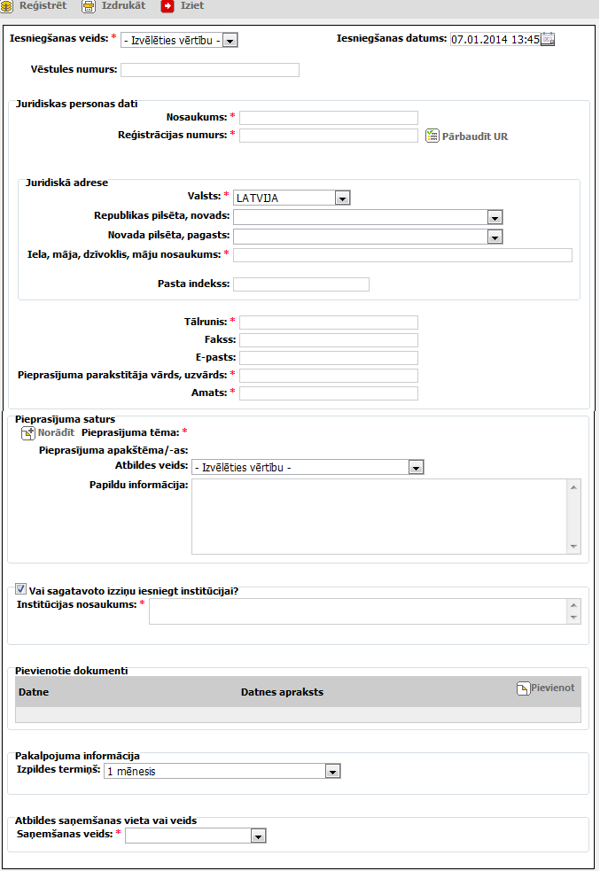 Logs „Iesniegums (par juridisku personu)” paredzēts arhīva izziņu/uzziņu par juridisku personu iesnieguma izveidei sistēmas darba (iekšējā) vidē.