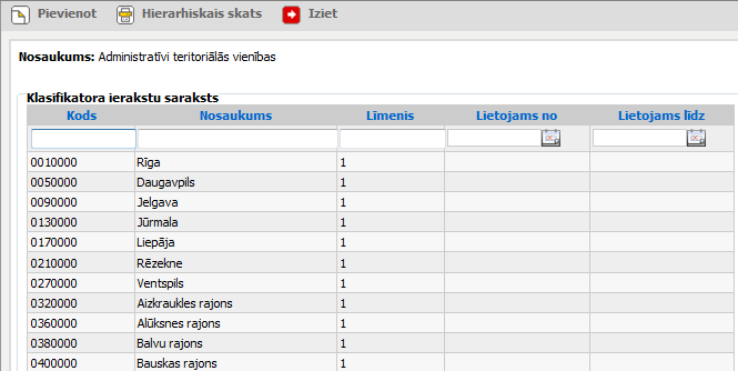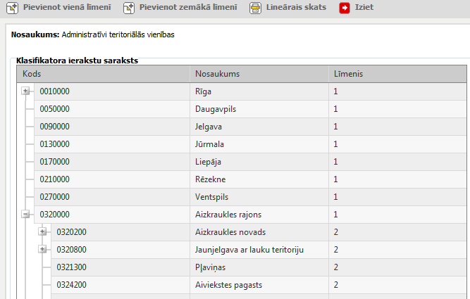 497. att. Klasifikatora uzturēšanas logs – hierarhiskais skats