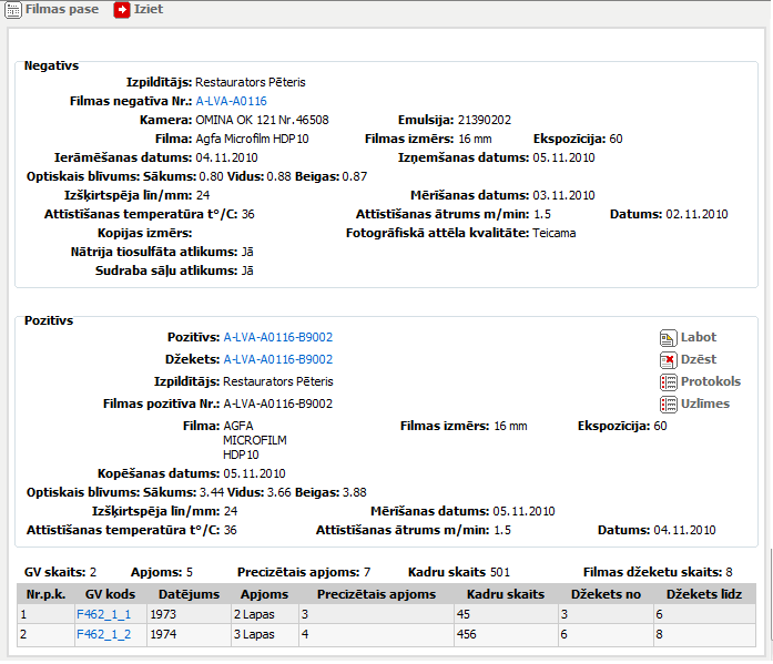 Filmas negatīva numurs. Loga apskates hipersaite, kuru noklikšķinot tiek atvērts logs glabājamo vienību apskatei (skat. aprakstu 13.1Logs: Glabājamā vienība). |