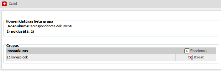 Blokā tiek attēlota nomenklatūras lietu grupas informācija |