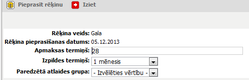 Rēķina pieprasīšanas datums |
