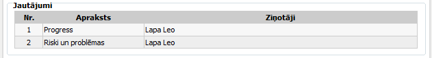 Ziņotāji par šo jautājumu. Apskates režīmā tiek attēlots kā hipersaite, uz kuras noklikšķinot tiek atvērts sēdes jautājuma apskates logs. |