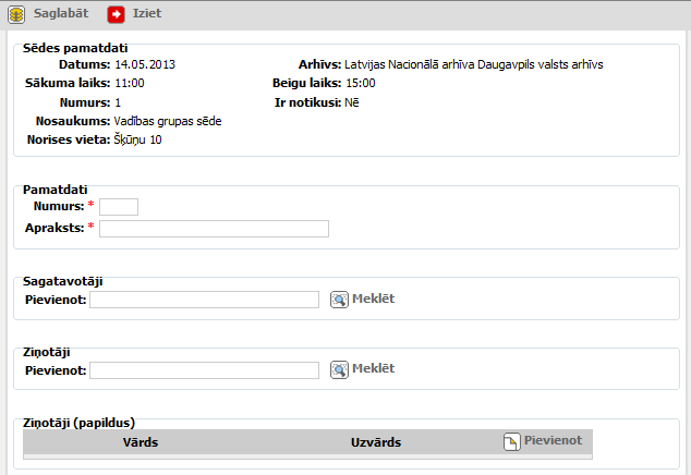Šajā datu blokā tiek attēlota sēdes pamatdatu informācija, kurai piesaistīts jautājums. Informācija nav pieejama labošanai. |