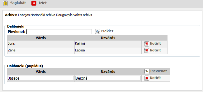 Arhīva nosaukums, kurā reģistrēts lietotājs, kurš sēdes noklusēto sastāvu izveidojis. Lauks nav labojams rediģēšanas režīmā. |