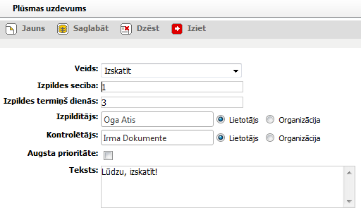 Uzdevuma teksts. Lauks ir obligāti aizpildāms, veidojot plūsmas uzdevumu. |