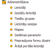 − ‘Mapes’ – noklikšķinot uz mapes, tiek atvērs mapju administrēšanas logs (skat. aprakstu 3.2Logs: Mapju administrēšana);