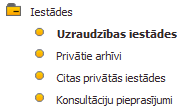 − ‘Citas privātās iestādes’ – pieejamas citas privātās iestādes;