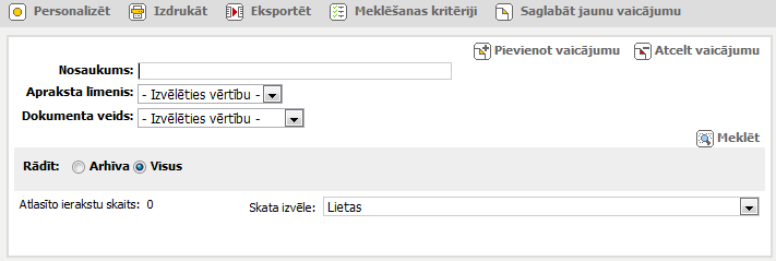 Lietu, apakšlietu un dokumentu meklēšanas kritēriji: