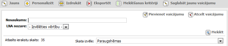 Mapju sarakstā izvēloties šo mapi, tiek attēlots saraksta pārlūka bloks ‘Meklēšanas kritēriji’ ar pēc noklusējuma esošajiem meklēšanas kritērijiem.
