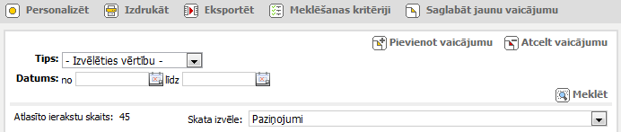 Paziņojuma meklēšanas kritēriji: