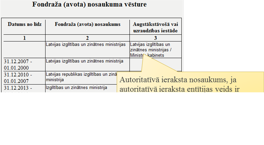 Lai izveidotu atskaiti ‘Fondraža (avota) nosaukuma vēsture’, kurā attēlo informāciju par autoritatīvā ieraksta nosaukumu formām: