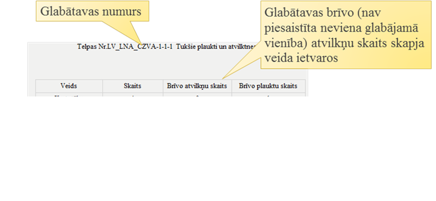 Atskaite ‘Tukšie plaukti un atvilktnes’ ir paredzēta informācijas attēlošanai par glabātavas skapjiem pēc to veida brīvajiem plauktiem un atvilktnēm.