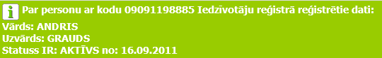 − Personas kods nav norādīts pareizajā formātā vai nav atrasts Iedzīvotāju reģistrā!