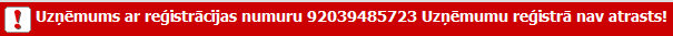 − Uzņēmums ar reģistrācijas numuru Uzņēmumu reģistrā nav atrasts!