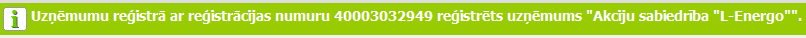 − Uzņēmumu reģistrā ar reģistrācijas numuru reģistrēts uzņēmums.