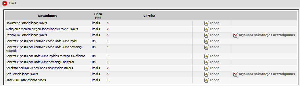 Maksimālais uzdevumu skaits, kas tiek attēlots lietotājam paziņojumu sākuma lapā (skat. aprakstu 2.5.4 Lietotāja paziņojumi). |