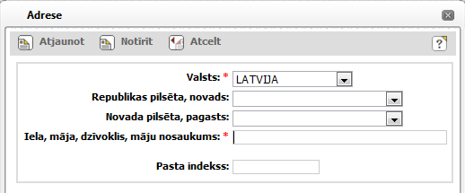 Iela, māja, dzīvoklis vai mājas nosaukums |