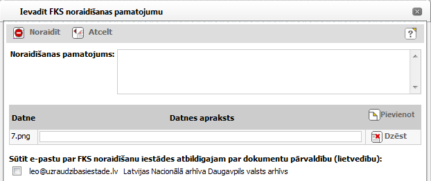 Sūtīt e-pastu par FKS noraidīšanu iestādes atbildīgajam par dokumentu pārvaldību (lietvedību) |