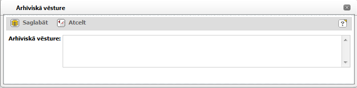 Aizpildiet apraksta vienības arhīvisko vēsturi un noklikšķiniet uz [Saglabāt]. Logs tiek aizvērts, pievienojot aprakstu apraksta vienībai.