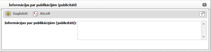 Apraksta vienības informācija par publikācijām (publicitāti). |