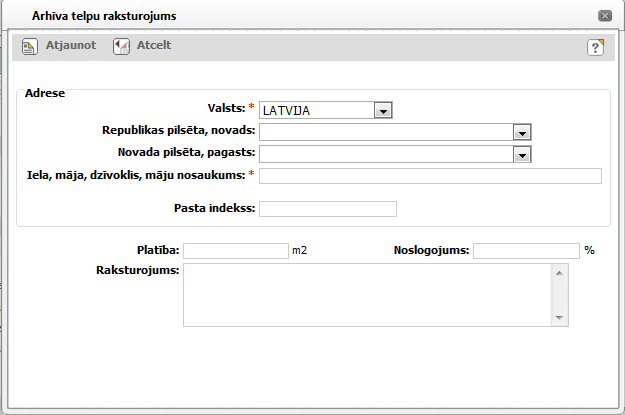 Logs paredzēts iestādes arhīva telpu apraksta pievienošanai.