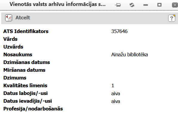 Lai skatītu apraksta vienībai piesaistītā ATS atslēgvārda informāciju, noklikšķiniet uz identifikatora vai nosaukuma, kuri tiek attēloti kā hipersaite.