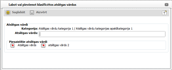 Logs paredzēts atslēgas vārdu pievienošanai un labošanai kategorijas ietvaros.