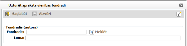 Lai labotu apraksta vienībai norādītā autoritatīvo ieraksta lomu, apraksta vienības šķirkļa ‘Konteksts un saturs’ blokā ‘Fondradis (autors)’ noklikšķiniet [Labot].
