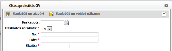 Lai saglabātu citu aprakstīto glabājamo vienību periodu un uzreiz pievienotu nākamo, noklikšķiniet uz [Saglabāt un veidot nākamo]. Logā ievadītā informācija par periodu tiek saglabāta un logs pieejams nākamā perioda ievadei.