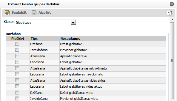 Atzīmējiet tās darbības, ka jāiekļauj objekta tiesību grupā un noklikšķiniet uz [Saglabāt].