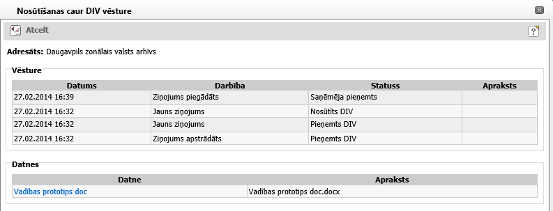 Attēls 389. Dokumenta nosūtīšanas caur DIV vēsture