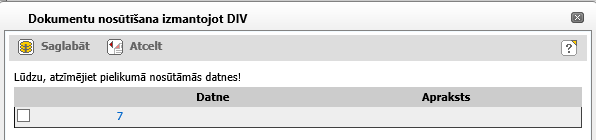 Izvēles rūtiņa, kuru atzīmējot norādiet datni, kuru jānosūta izmantojot DIV. |